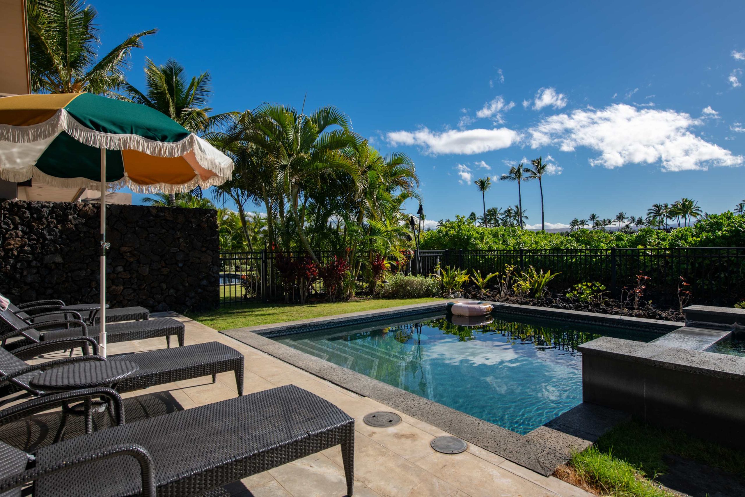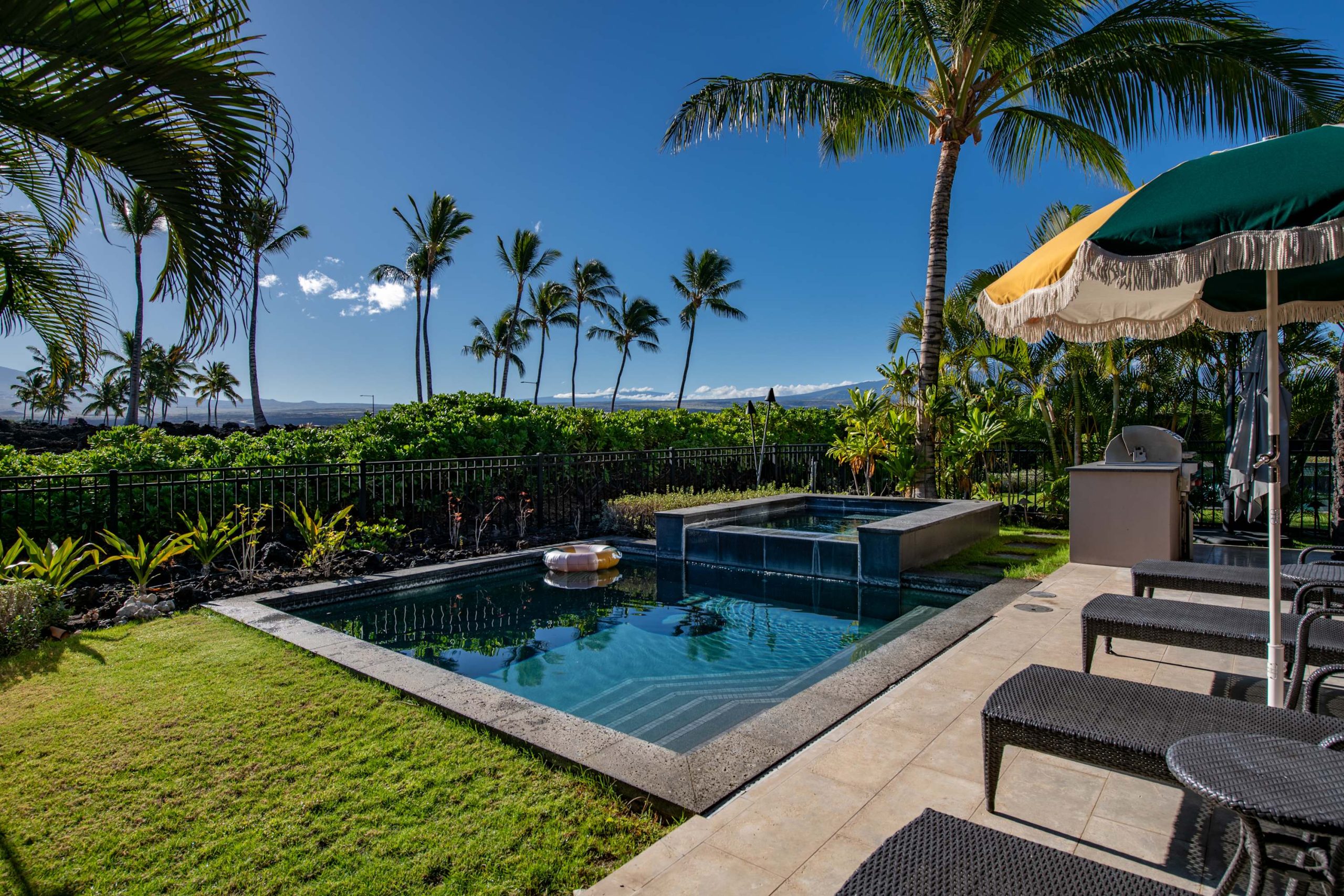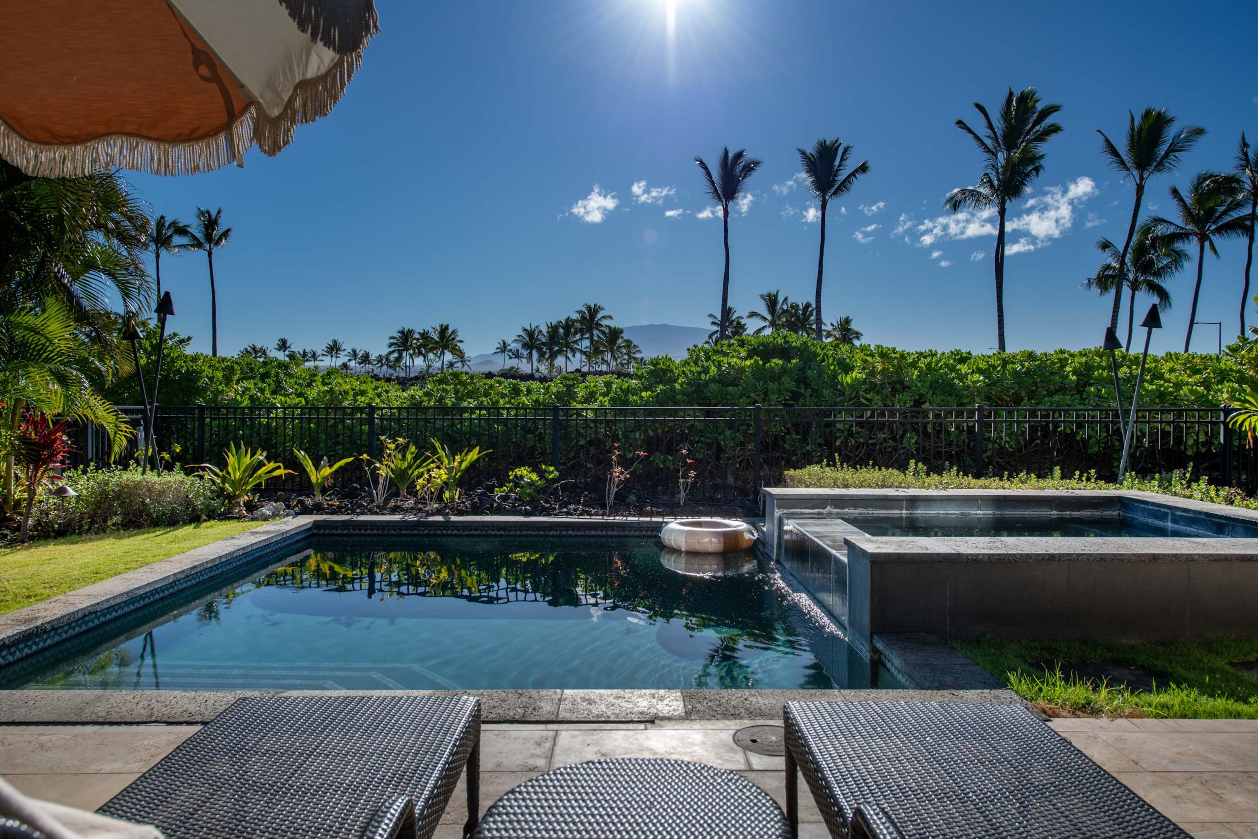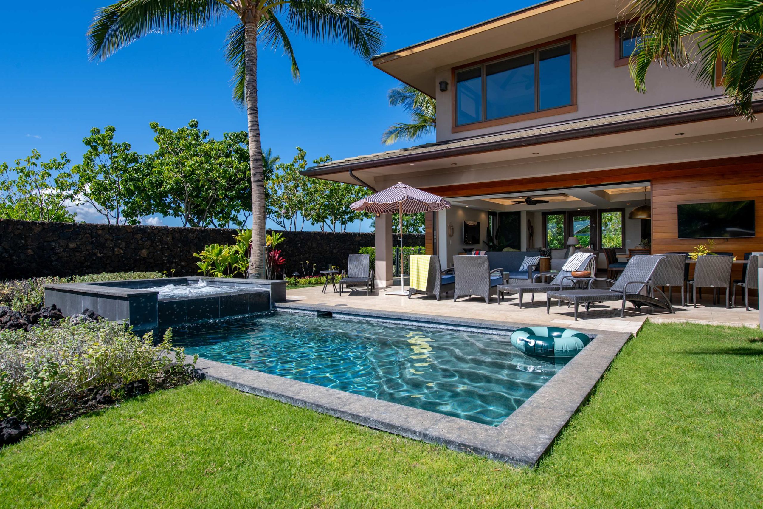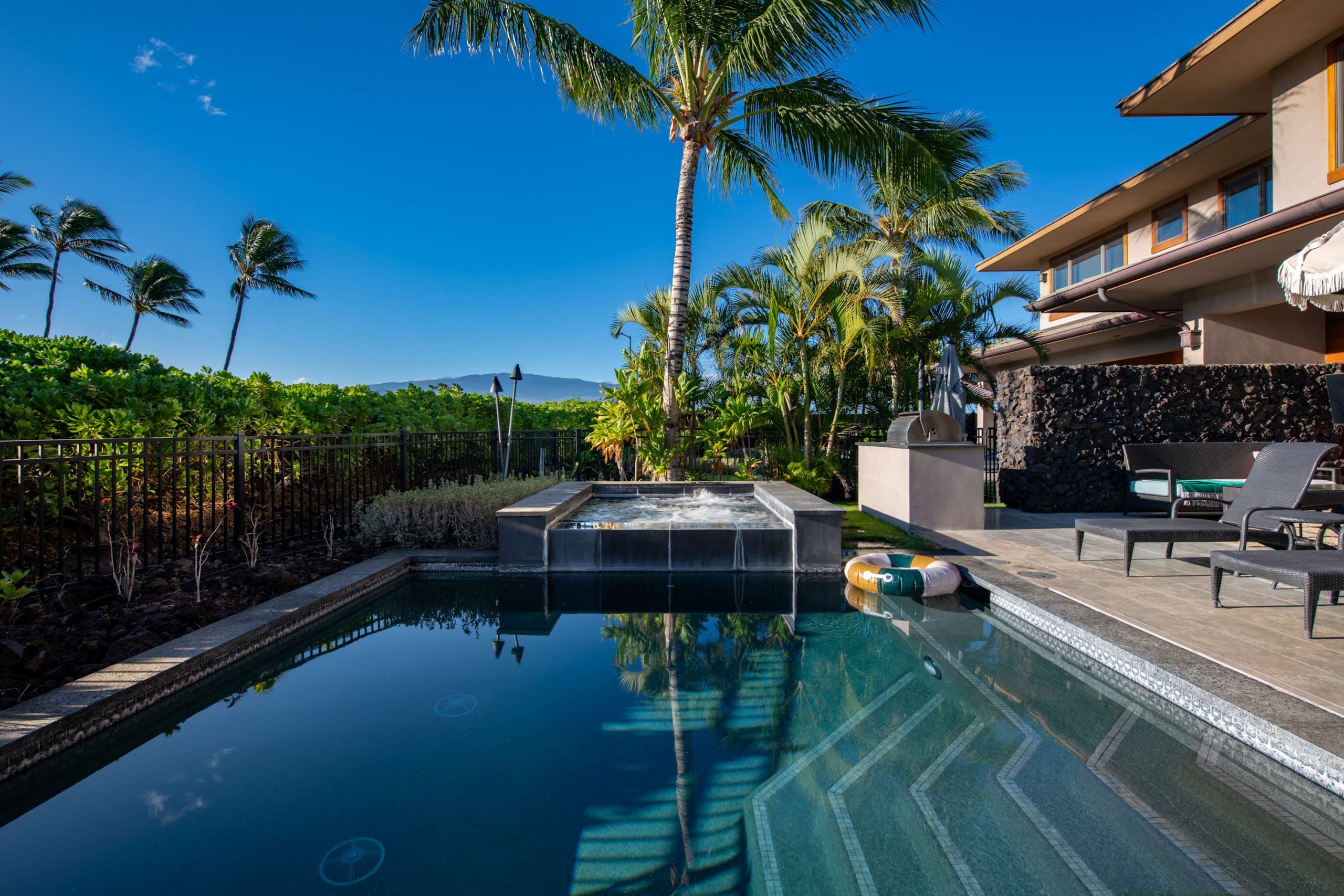 Spend your days lounging at the beach club and enjoy one of the private cabanas free of charge. While relaxing, you can have your food and beverages delivered to you as you lounge. In the evening, take some time to unwind by your private pool or watch the sunset from the second floor lanai overlooking the surrounding mountains. Golf lovers can spend a day playing golf at The Francis I’I Brown South Course right in the home’s backyard.