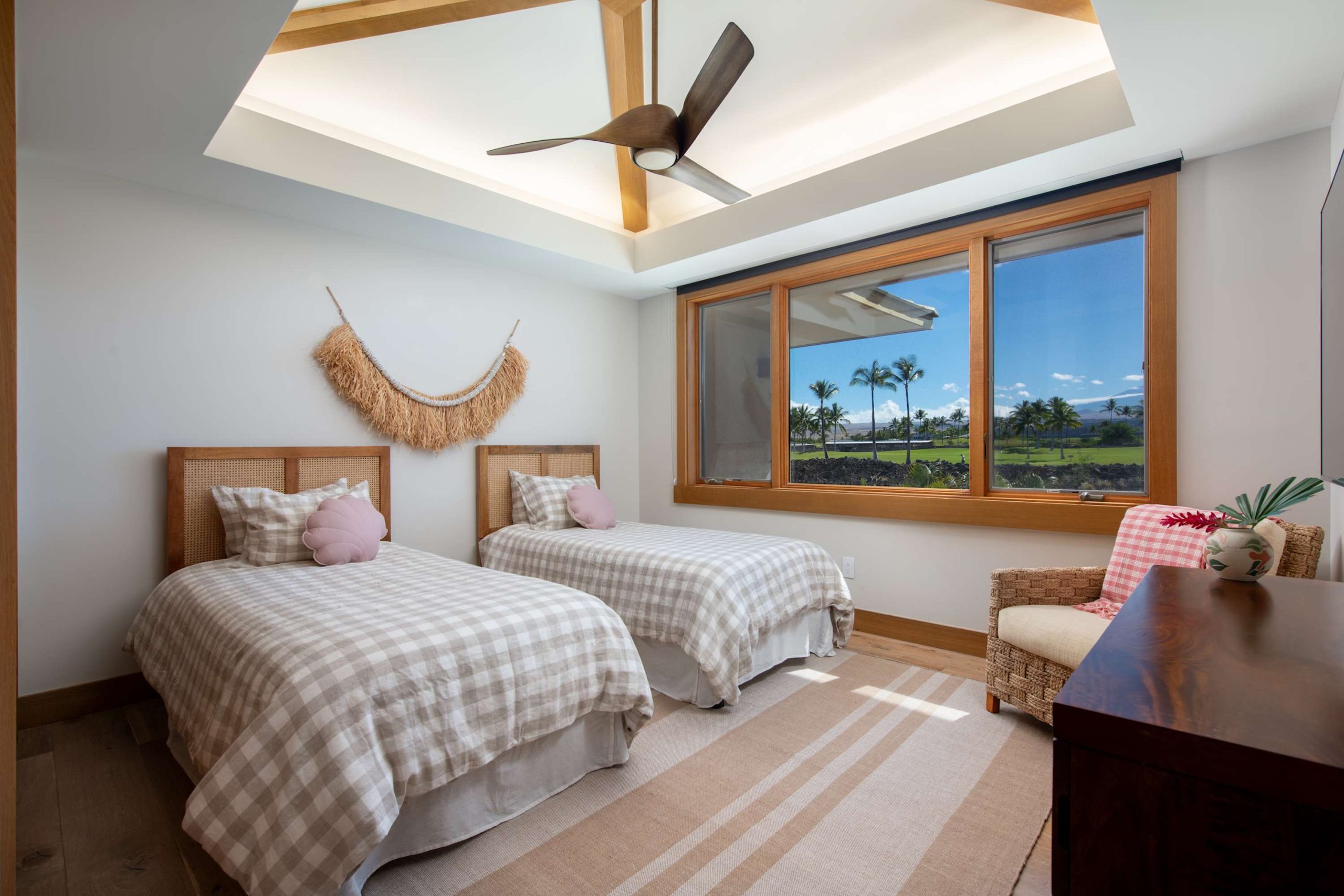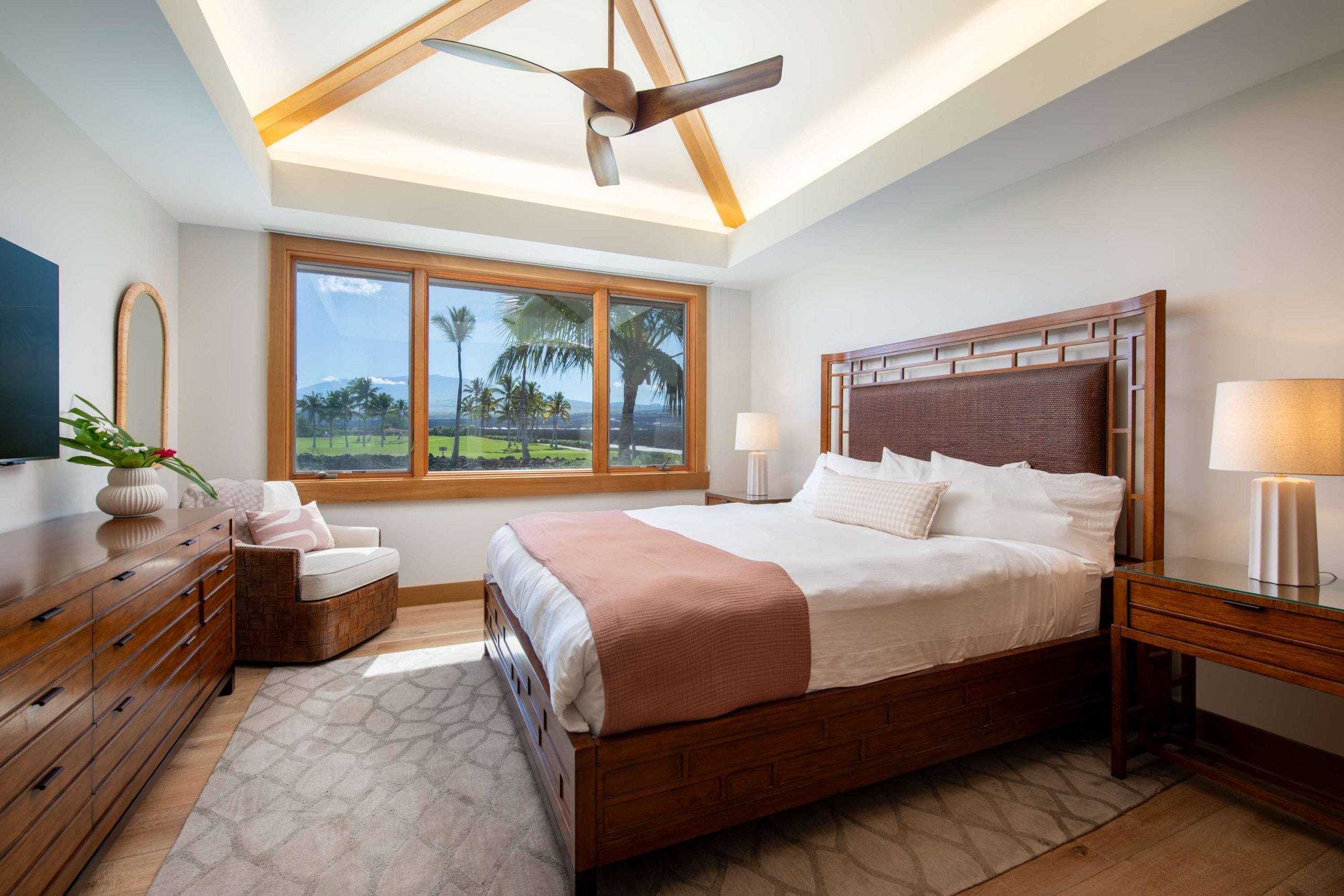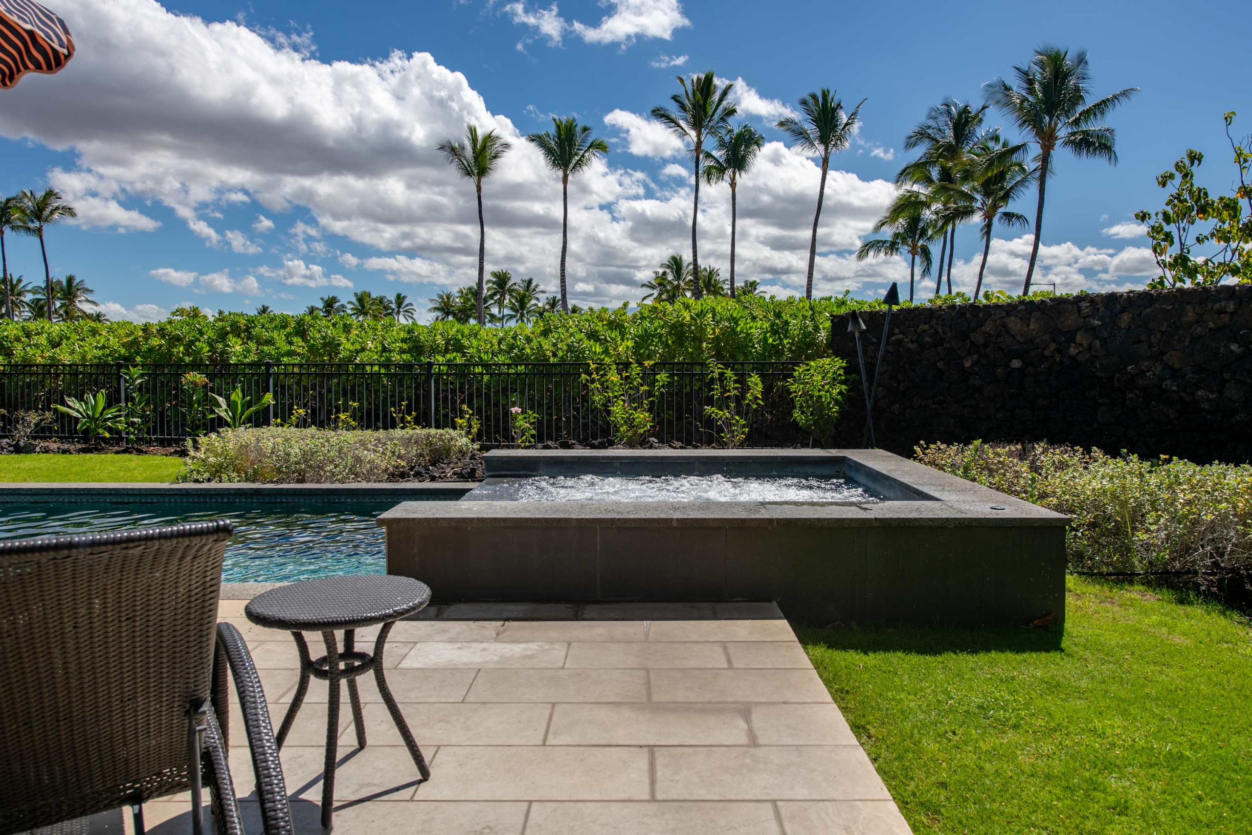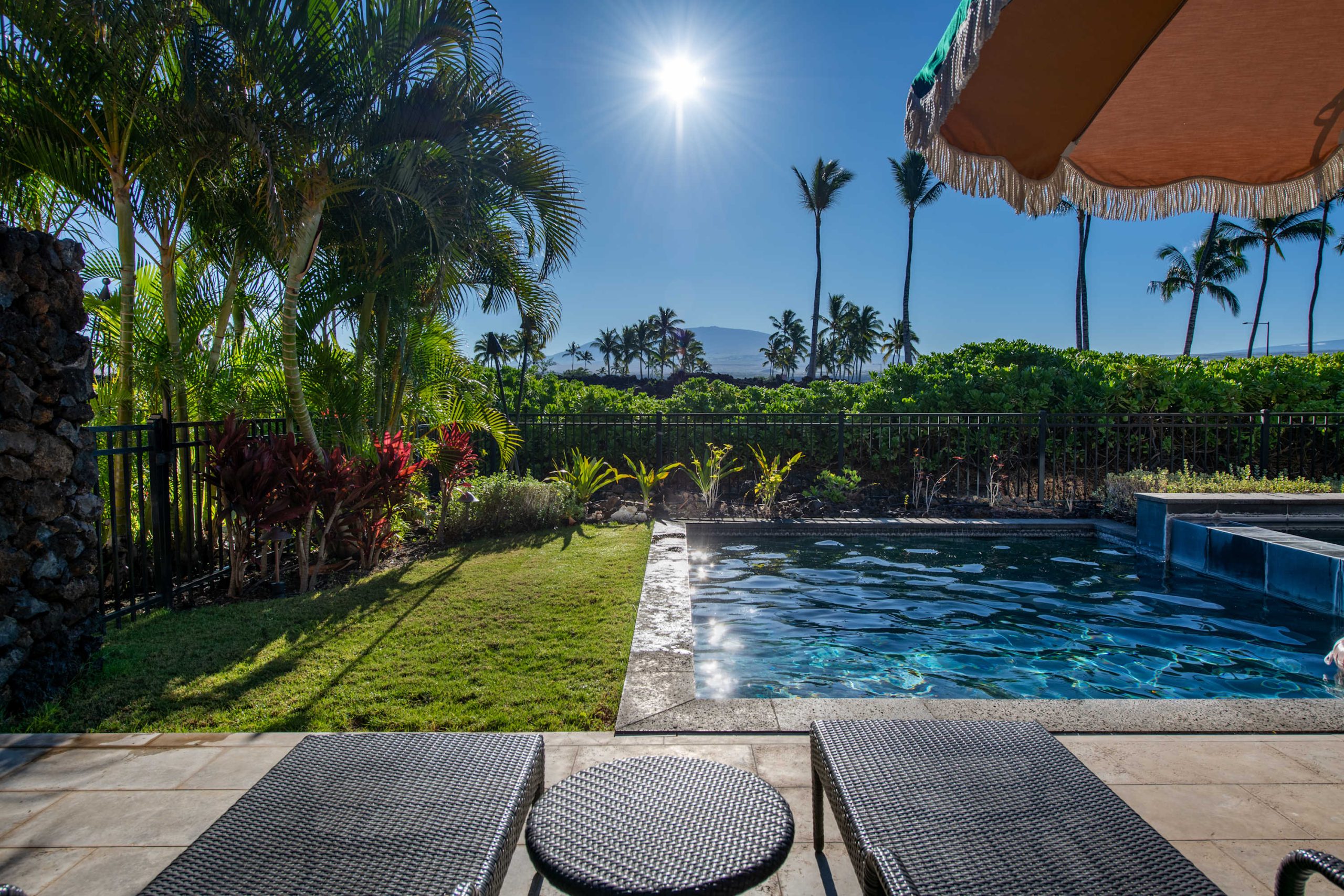 Spend your days lounging at the beach club and enjoy one of the private cabanas free of charge. While relaxing, you can have your food and beverages delivered to you as you lounge. In the evening, take some time to unwind by your private pool or watch the sunset from the second floor lanai overlooking the surrounding mountains. Golf lovers can spend a day playing golf at The Francis I’I Brown South Course right in the home’s backyard.