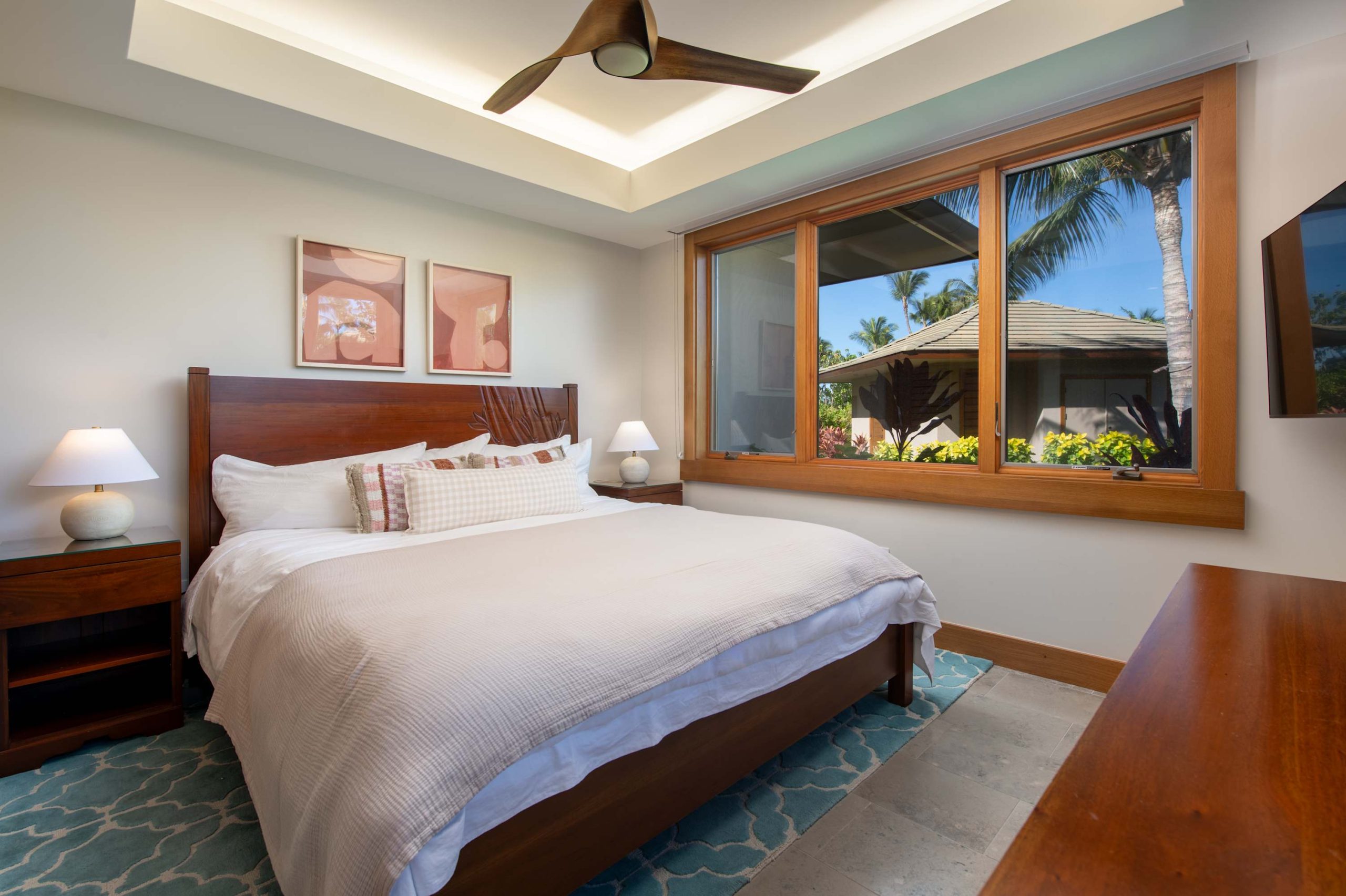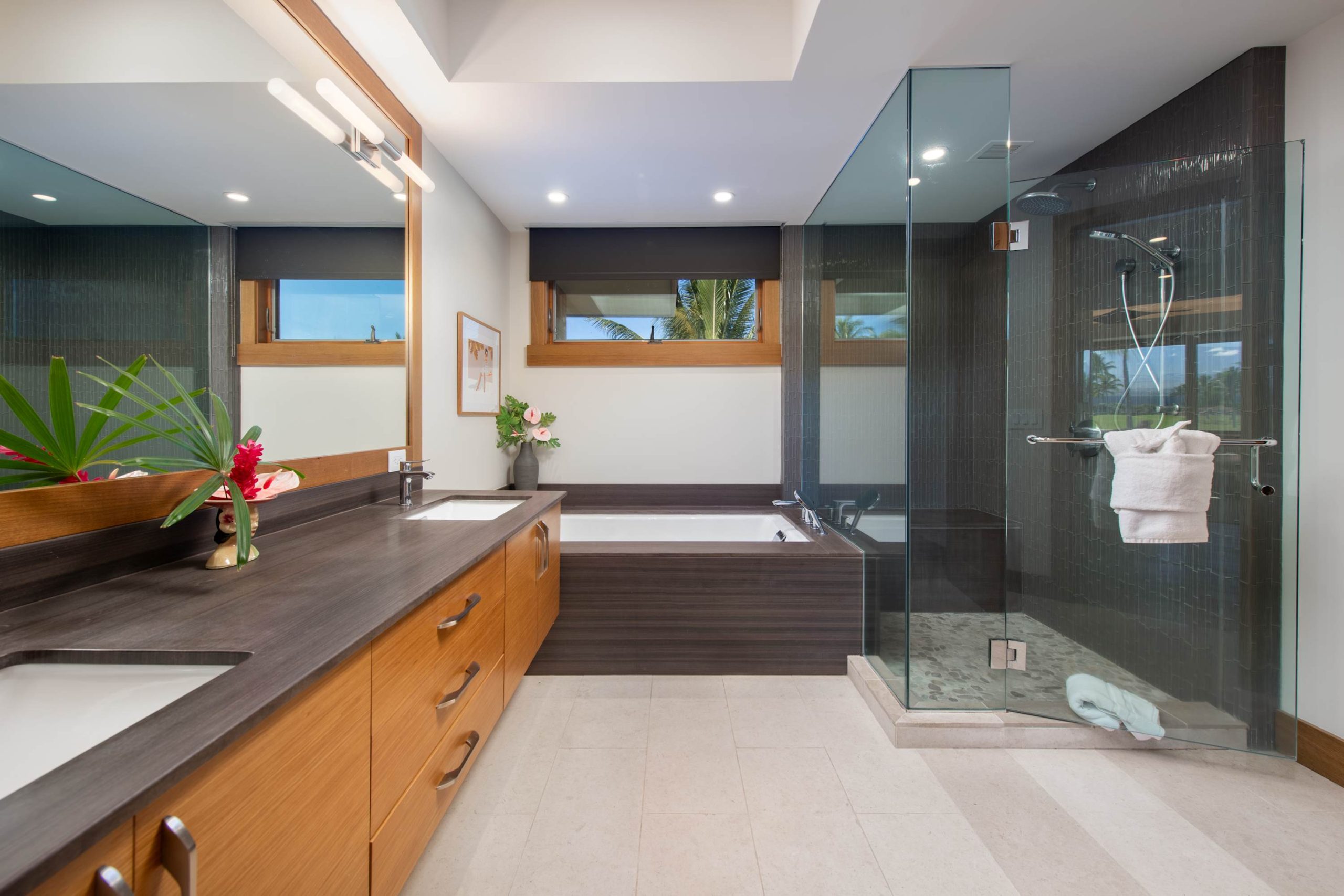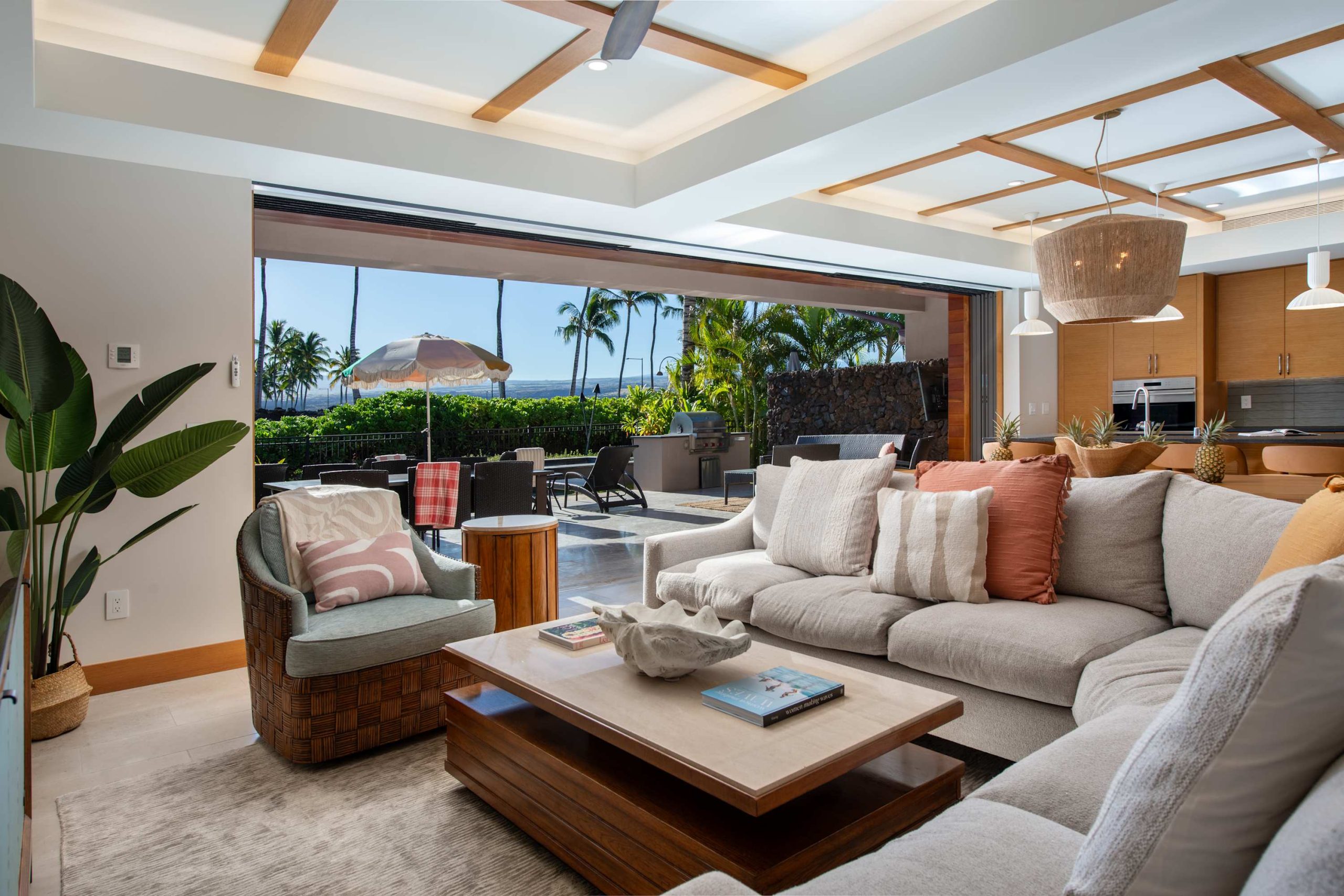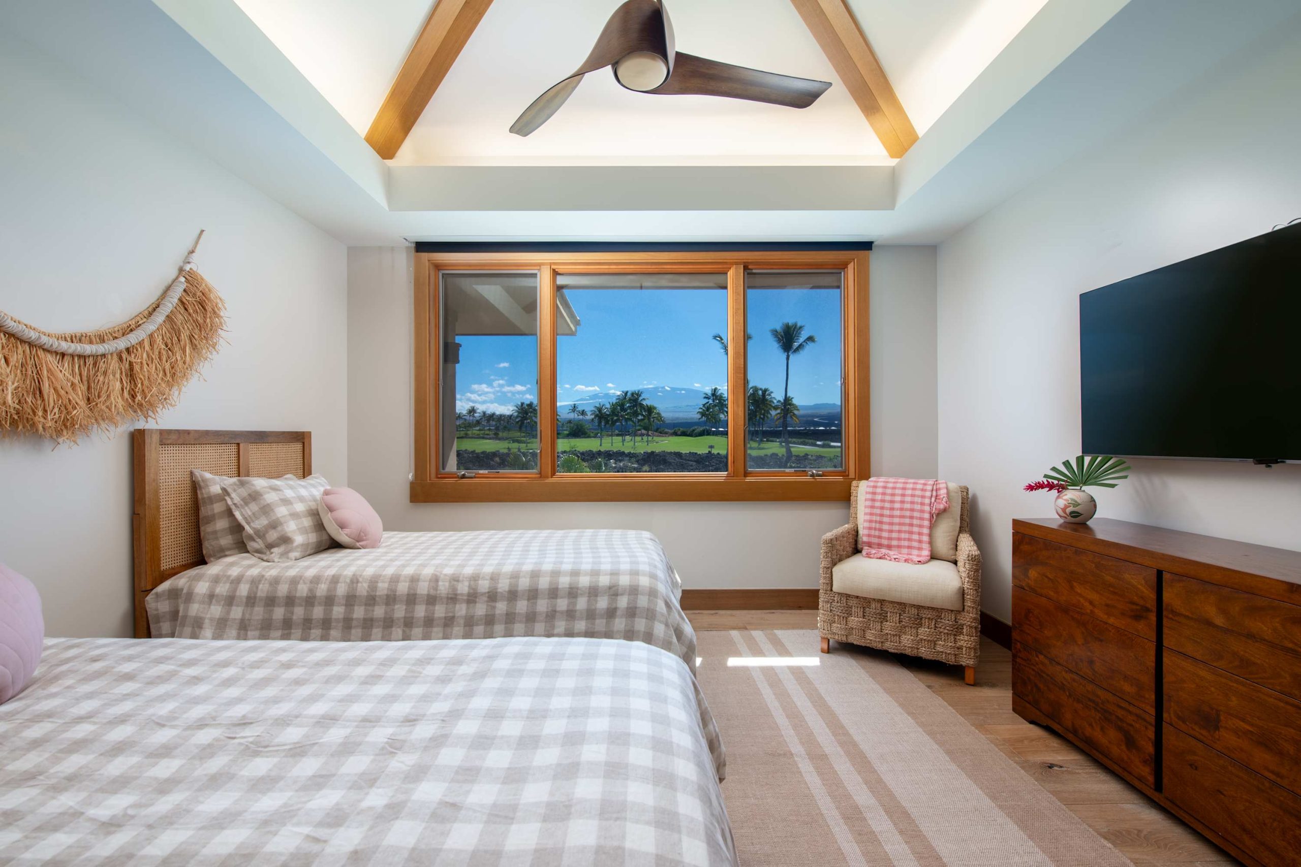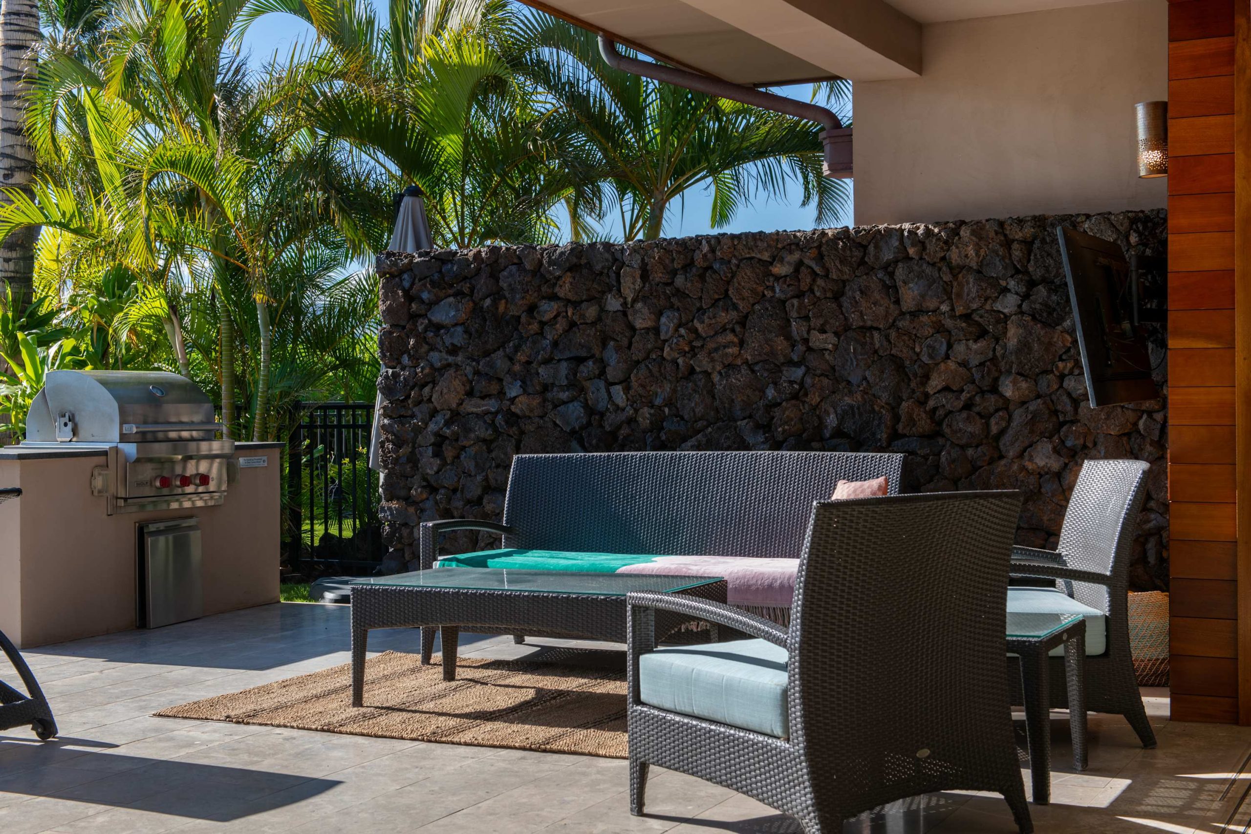 Spend your days lounging at the beach club and enjoy one of the private cabanas free of charge. While relaxing, you can have your food and beverages delivered to you as you lounge. In the evening, take some time to unwind by your private pool or watch the sunset from the second floor lanai overlooking the surrounding mountains. Golf lovers can spend a day playing golf at The Francis I’I Brown South Course right in the home’s backyard.