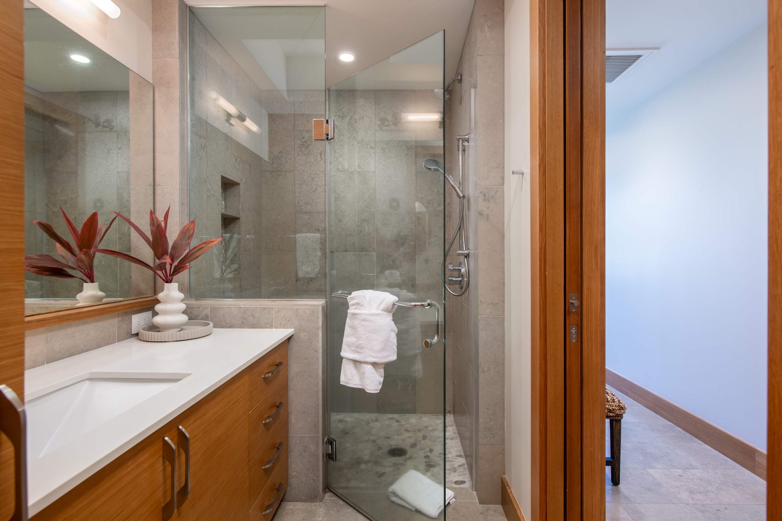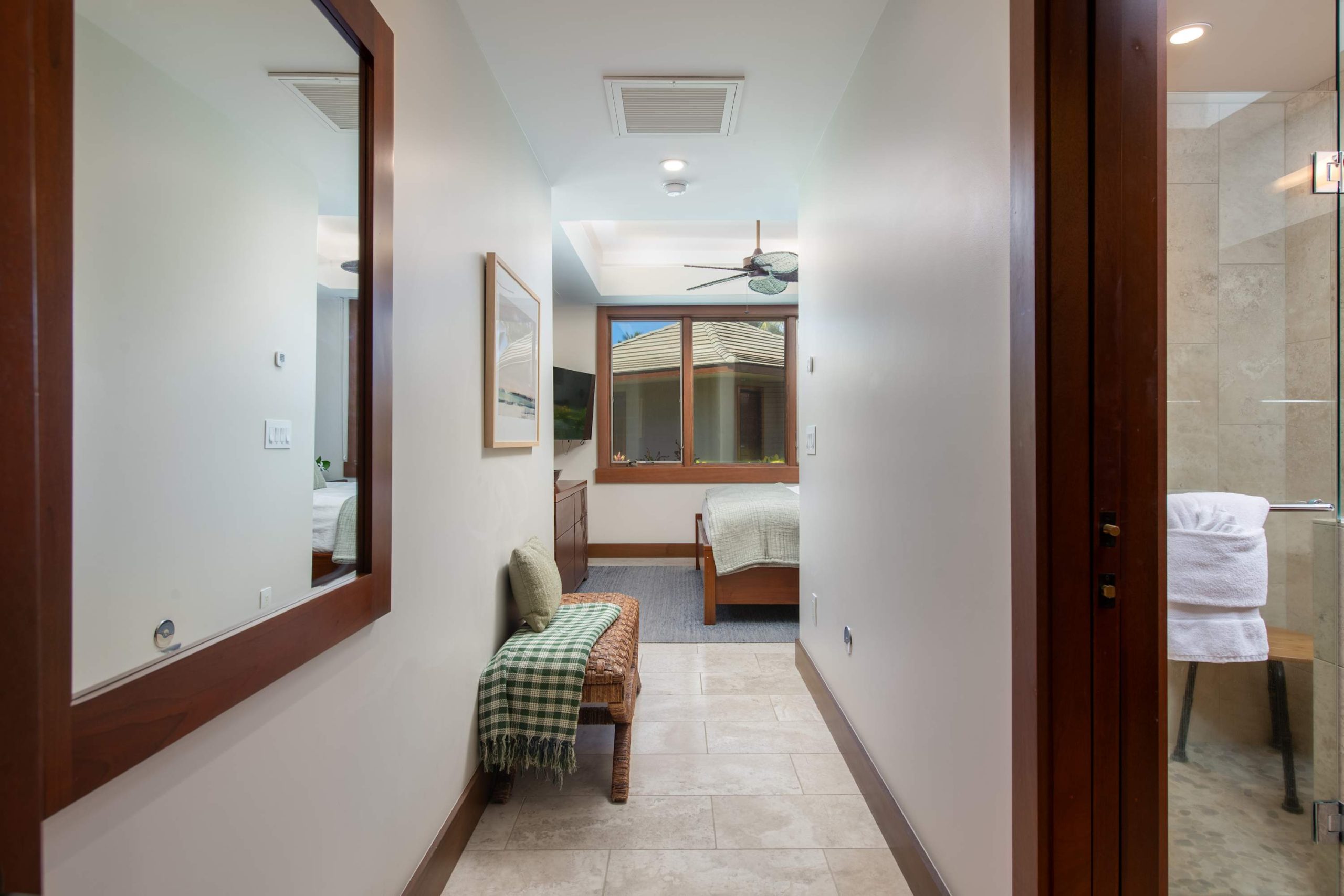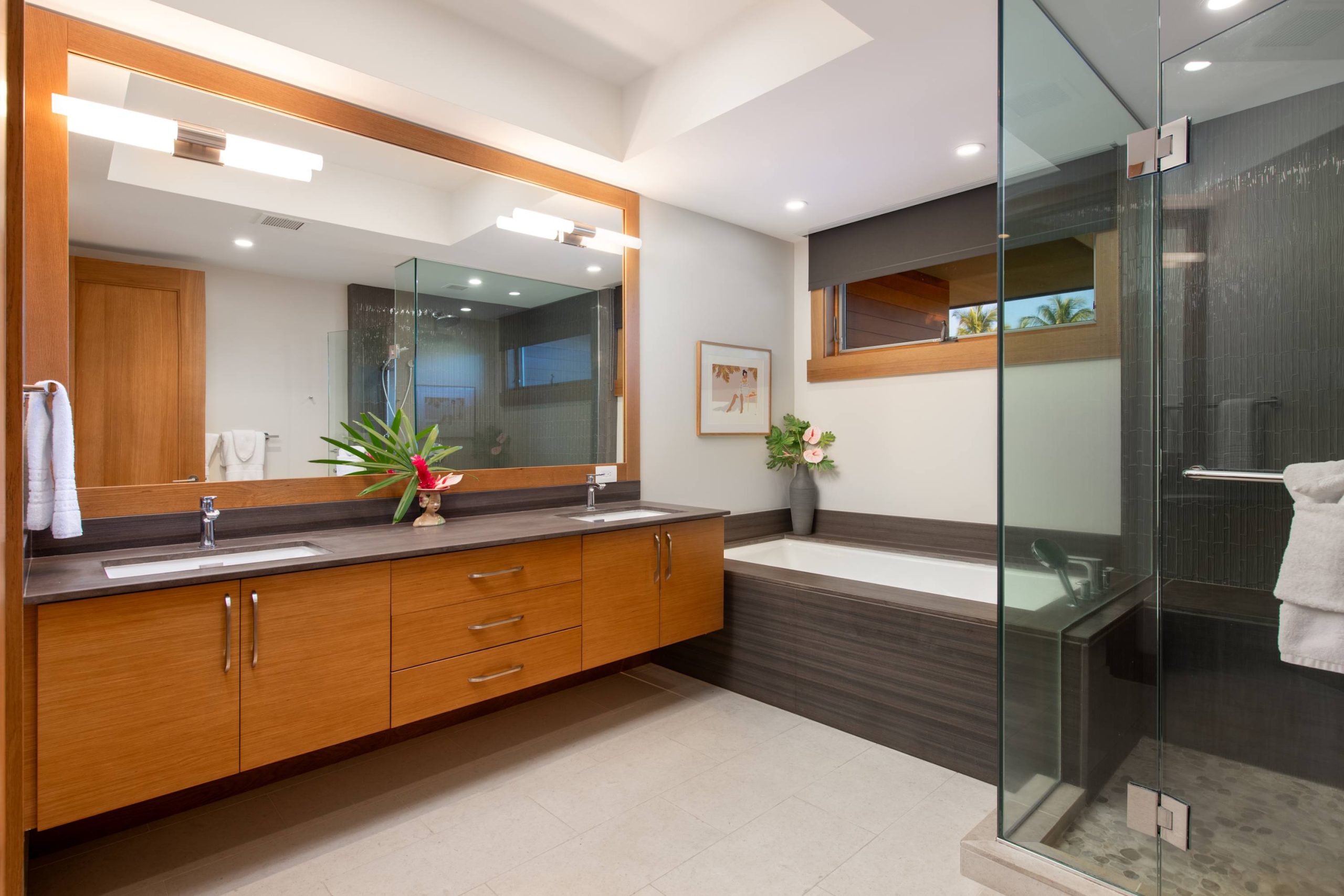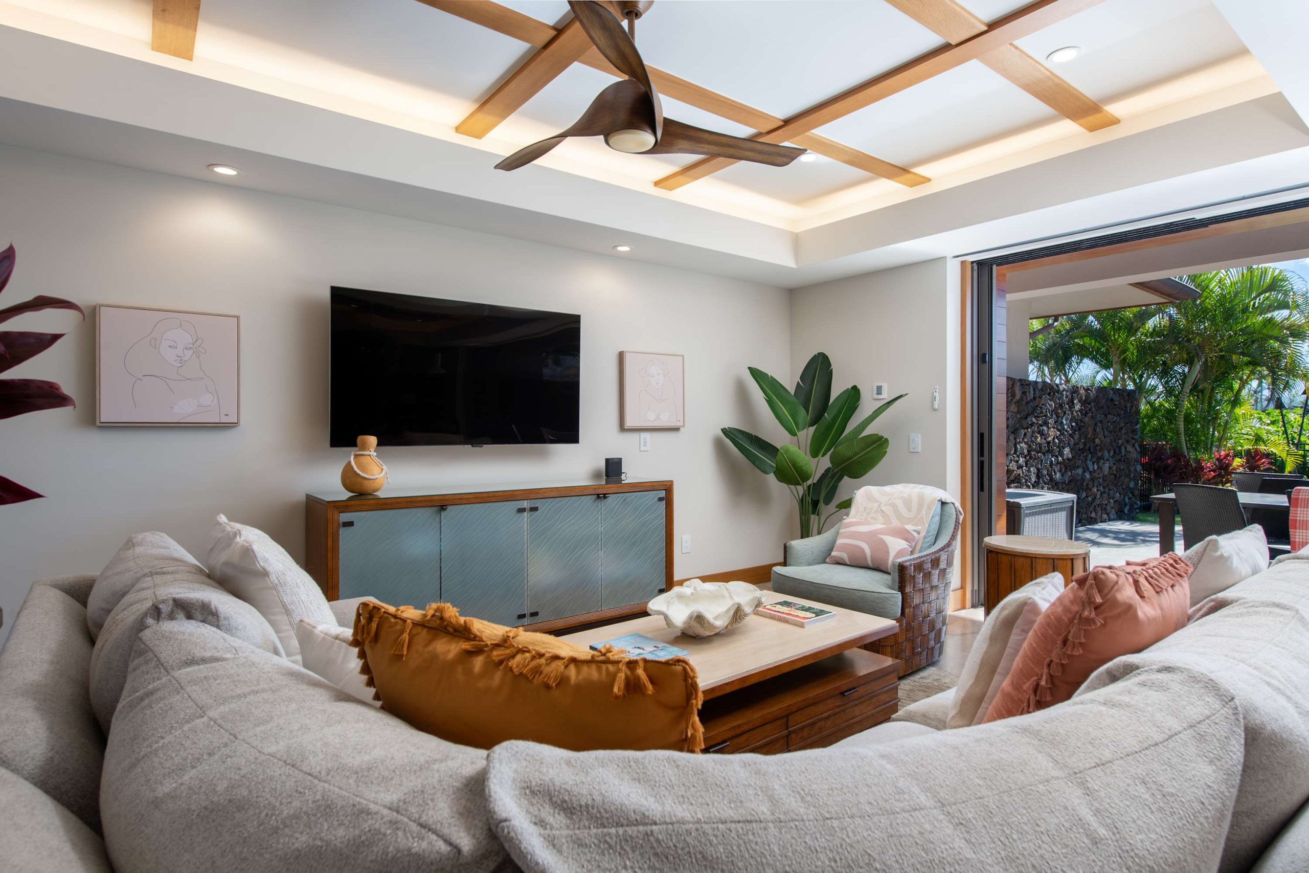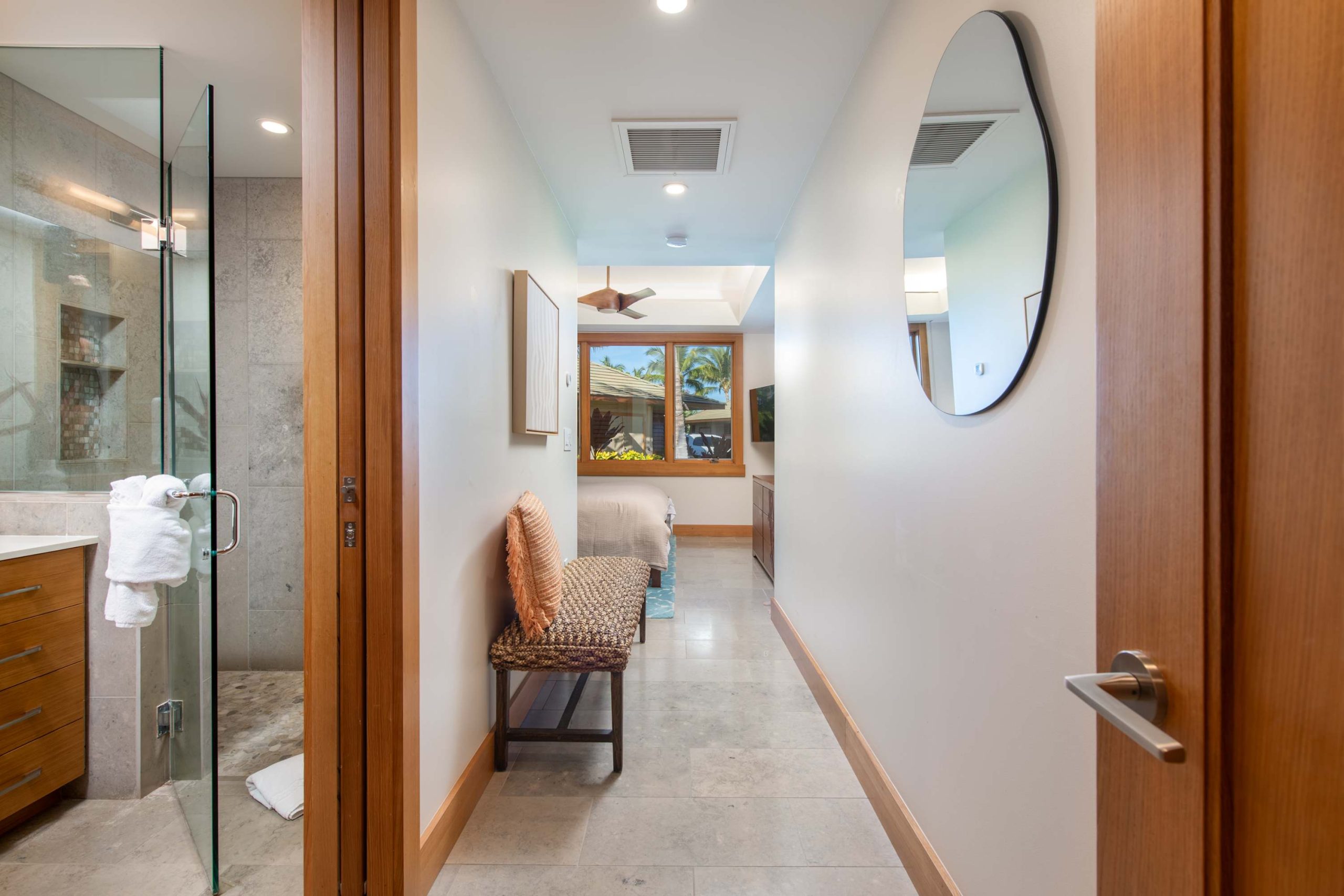 Spend your days lounging at the beach club and enjoy one of the private cabanas free of charge. While relaxing, you can have your food and beverages delivered to you as you lounge. In the evening, take some time to unwind by your private pool or watch the sunset from the second floor lanai overlooking the surrounding mountains. Golf lovers can spend a day playing golf at The Francis I’I Brown South Course right in the home’s backyard.