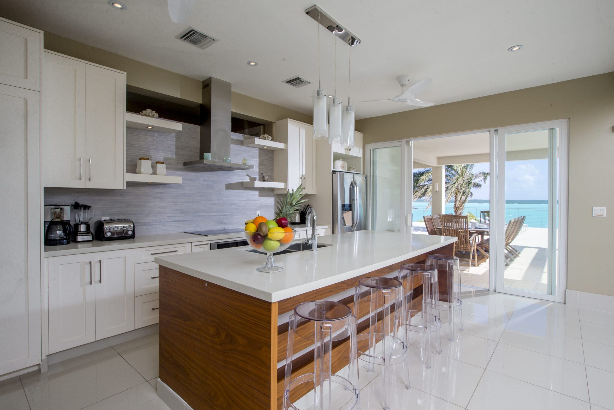 Spend your mornings enjoying your coffee on the sprawling poolside terrace as the vibrant ocean comes to life under the sunrise. Our oceanfront deck is a great spot to hop in a kayak and explore Chalk Sound – don’t be surprised if schools of colorful fish come to greet you! As the sun starts to set, take a dip in the pool or have a cocktail on the patio as you watch the sky softly change hues from our beloved blue to blushing pinks and oranges.