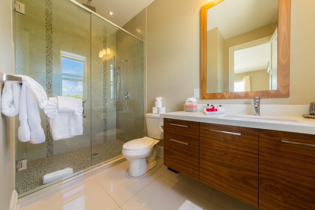 Enjoy a well-equipped kitchen, top-of-the-line linens and towels, a washer and dryer, smart TV’s, and high-quality toiletries—all designed to ensure you have everything you need for a comfortable vacation. Our villa is conveniently located just 15-20 minutes away from stunning beaches, exquisite restaurants, and entertainment options.