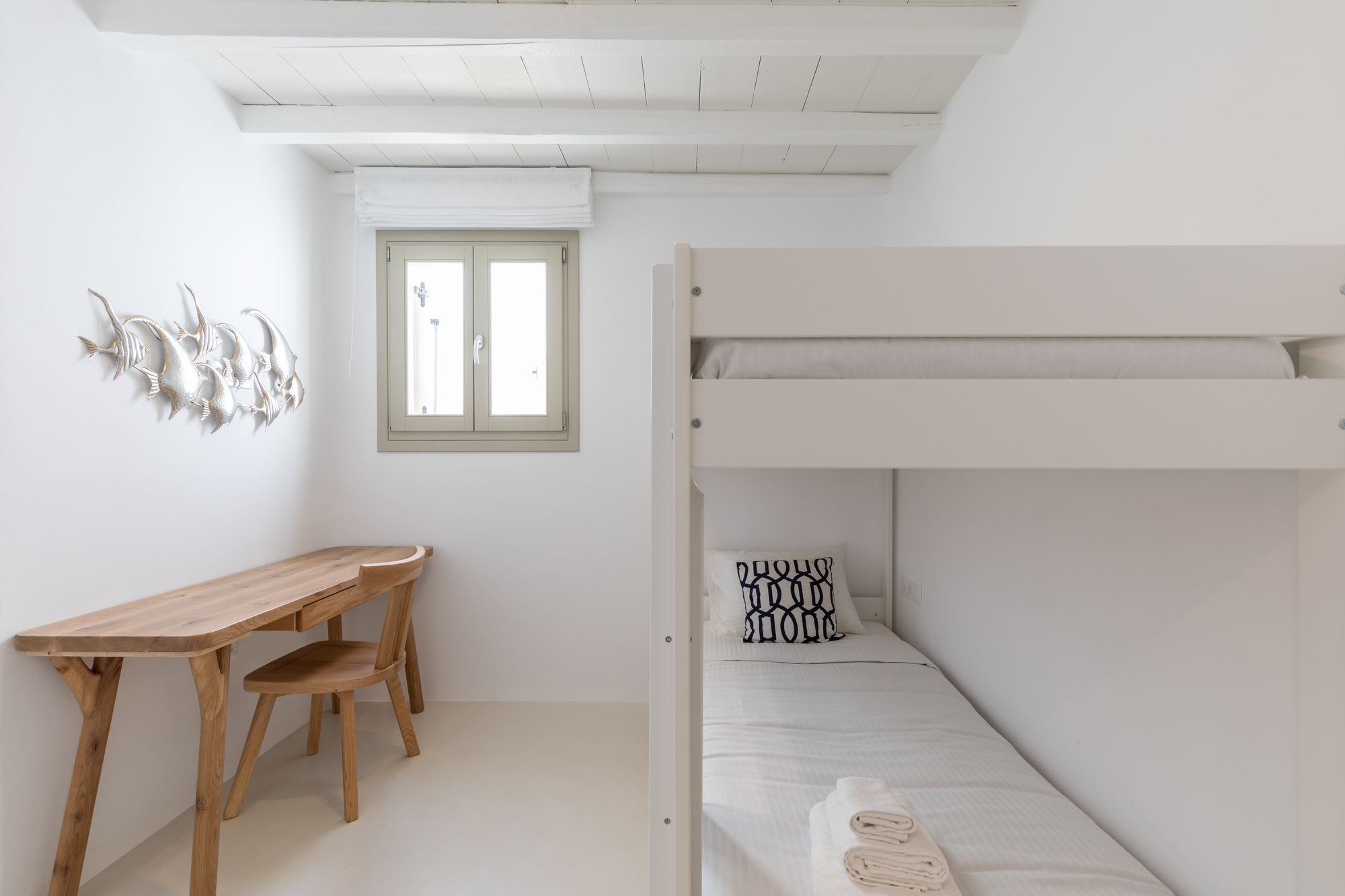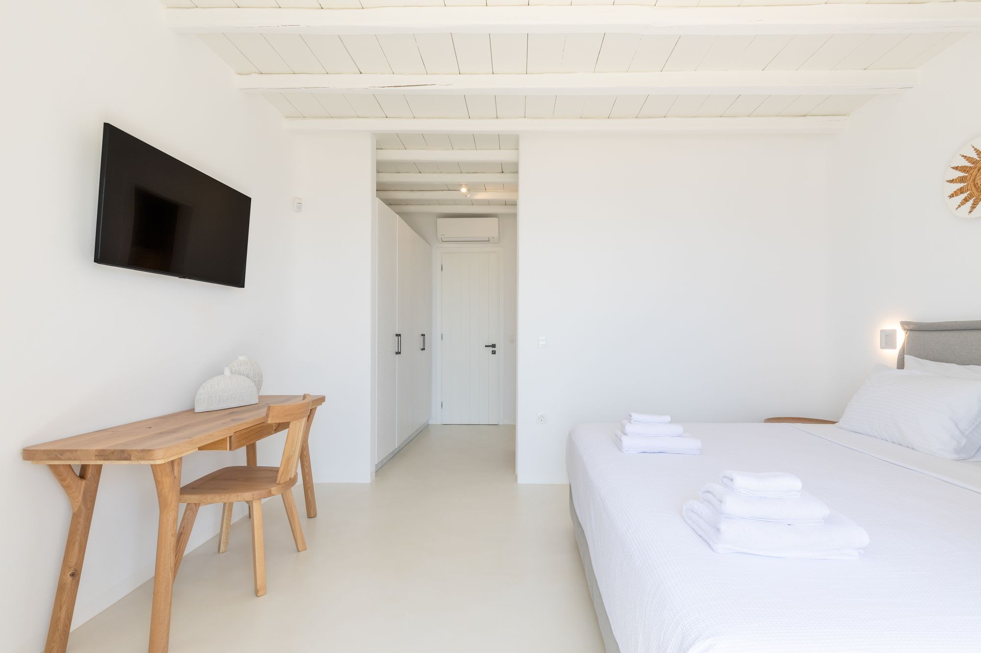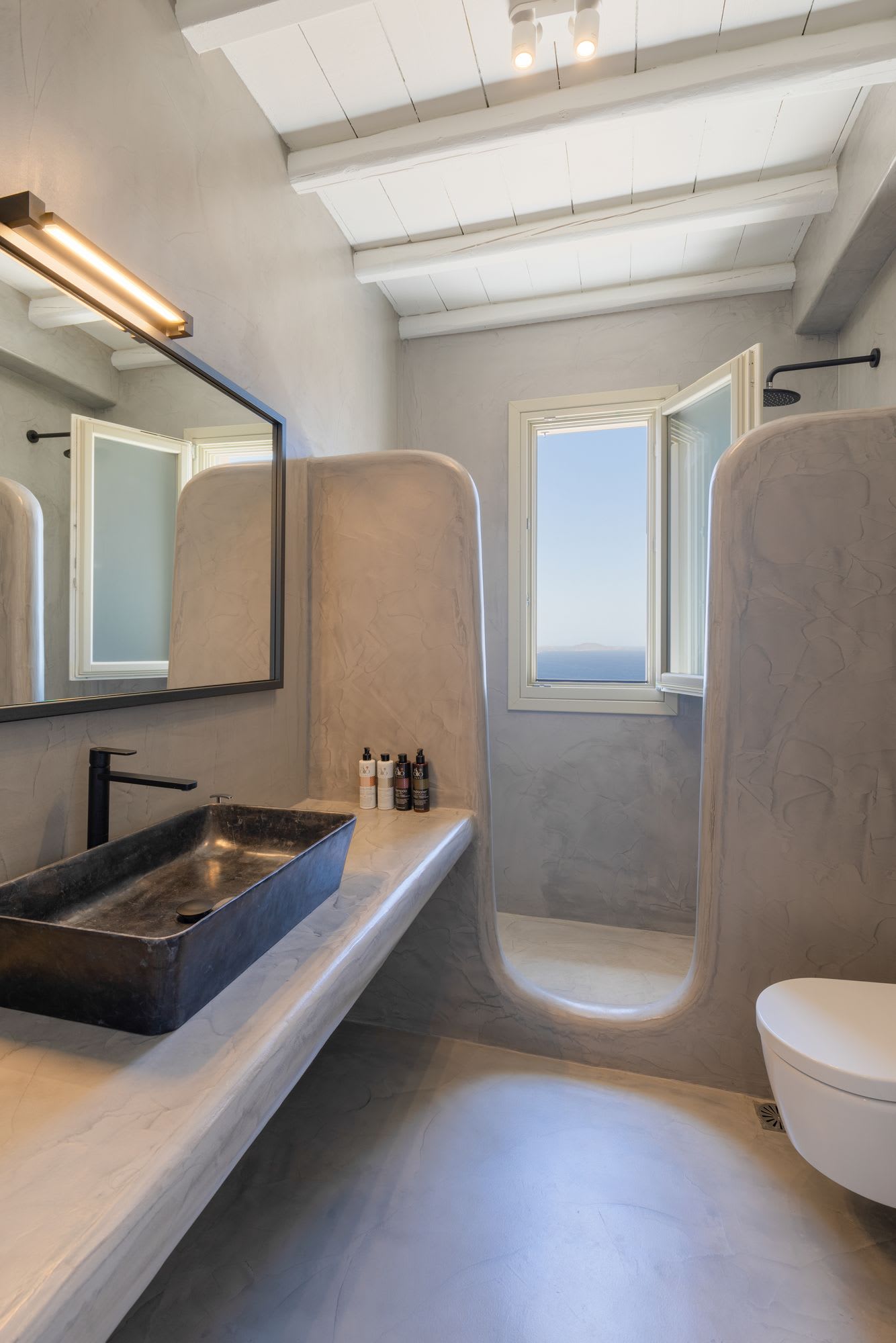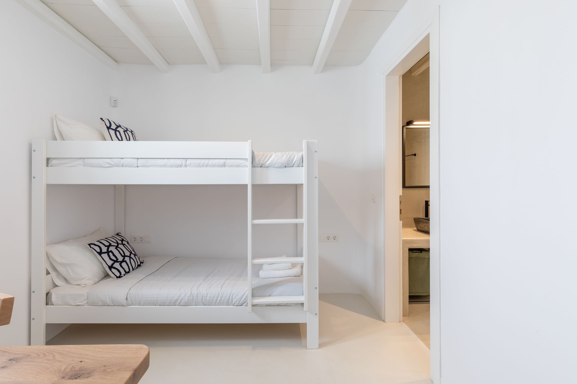 Mykonos is blessed with idyllic beaches of turquoise waters that meet fine powder sand. Our luxury villa features breathtaking sunset views overlooking the crystal blue Aegean Sea and the neighboring islands of Tinos and Delos. Ideal for those who wish for privacy, peace and quiet, our 5-bedroom, 4.5-bathroom Mykonos villa offers luxury living space, an outdoor pool, large verandas with pergolas, modern amenities and much more.