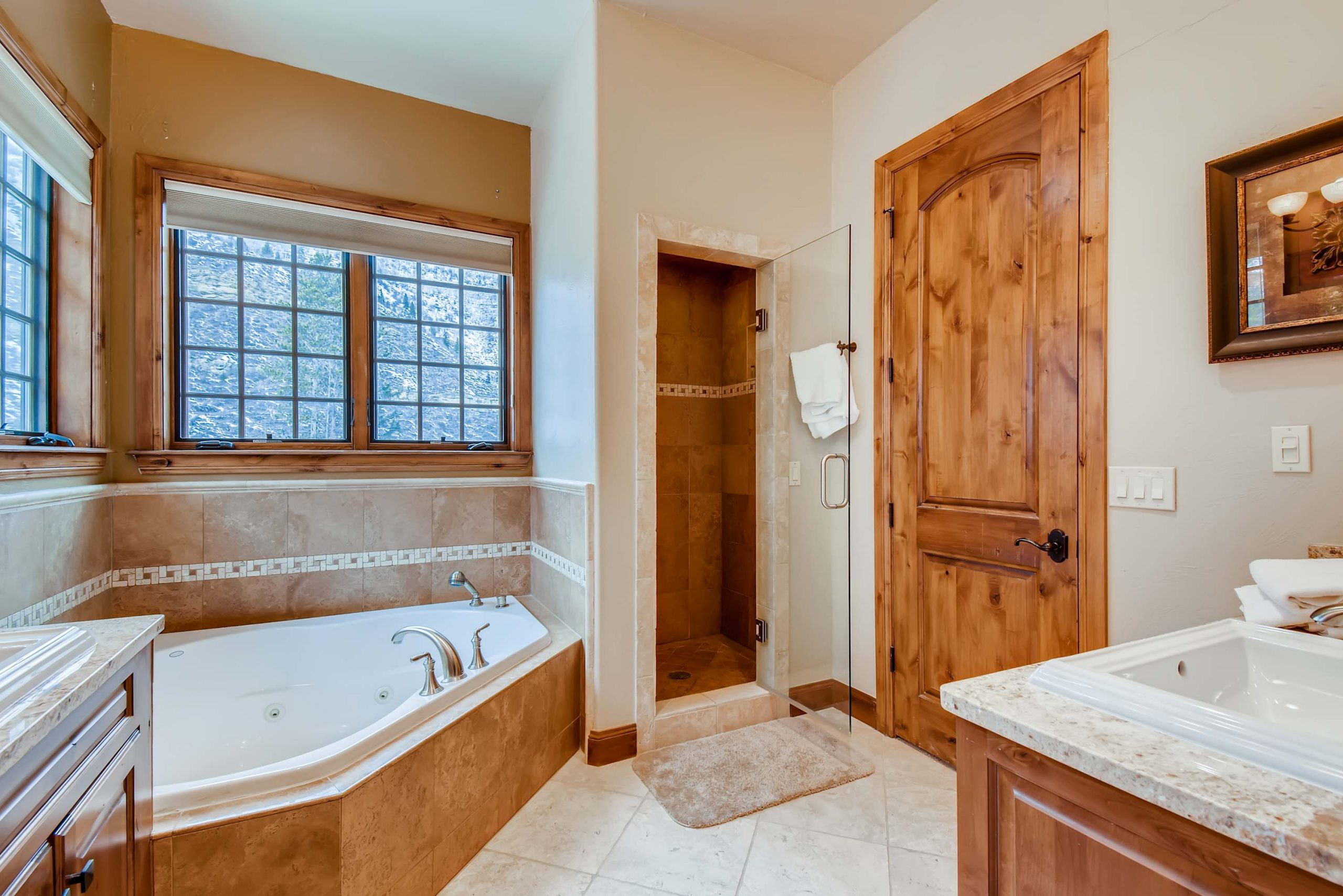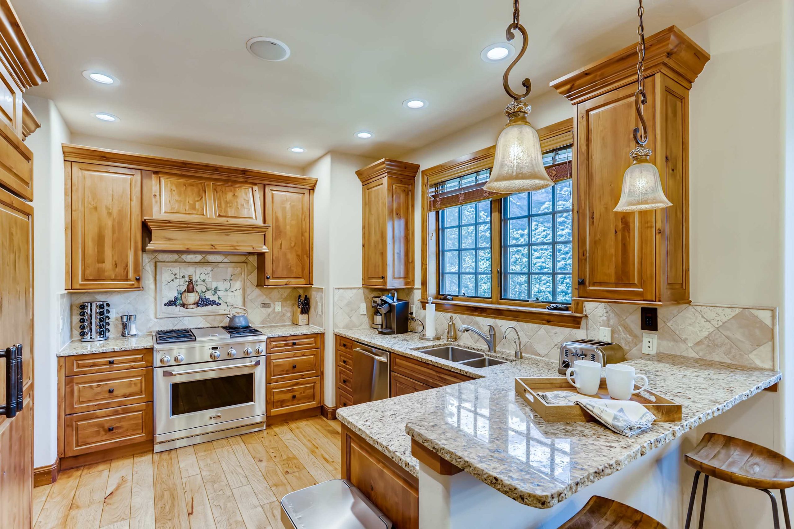 Our custom home is warm and inviting. It boasts many modern amenities including a covered outdoor hot tub. Fireplaces are numerous. Enjoy a gourmet kitchen with granite countertops and stainless-steel appliances. The tastefully appointed bedrooms will make you feel right at home. Not to mention the oversized deep soaking master bathtub which is perfect after a long day of hitting the slopes.